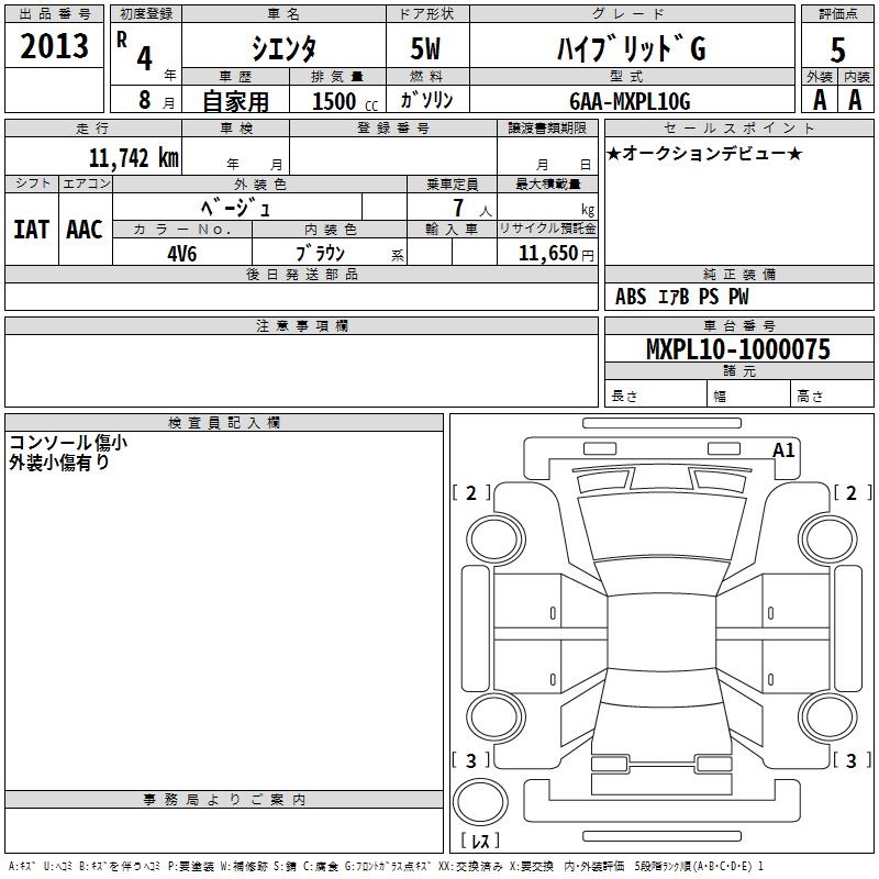 TOYOTA SIENTA HYBRID G - лот 2013