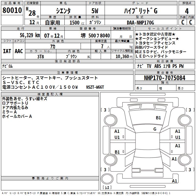 TOYOTA SIENTA HYBRID G - лот 80010