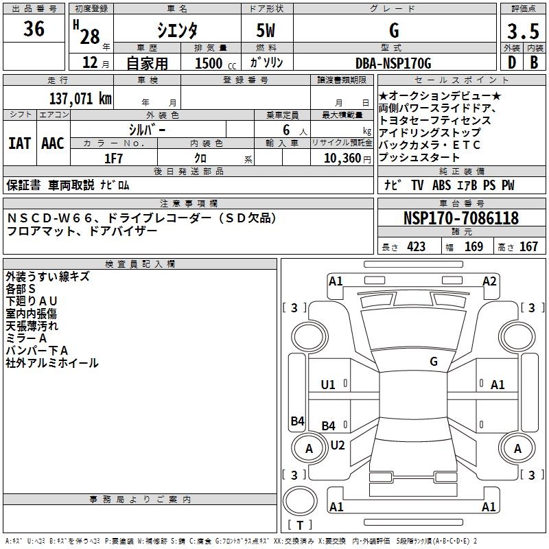 TOYOTA SIENTA G - лот 36