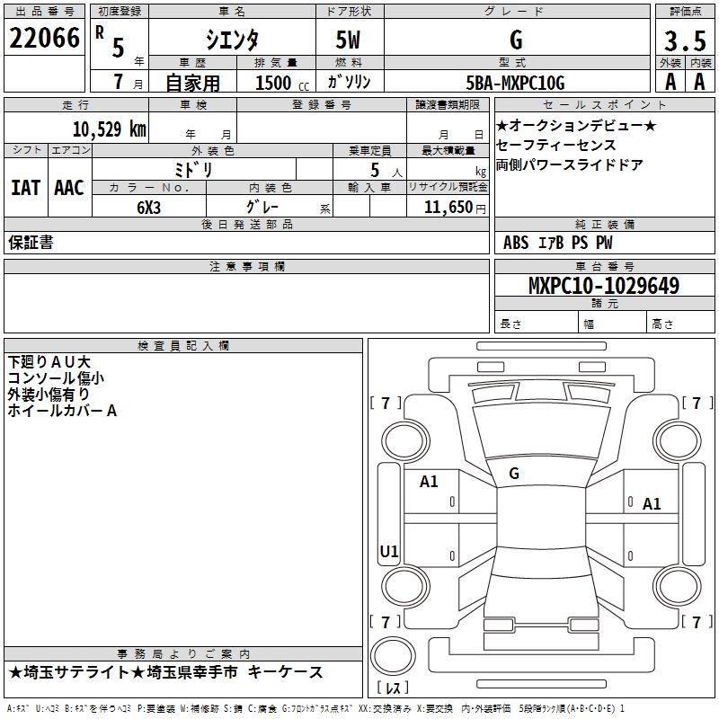 TOYOTA SIENTA G - лот 22066