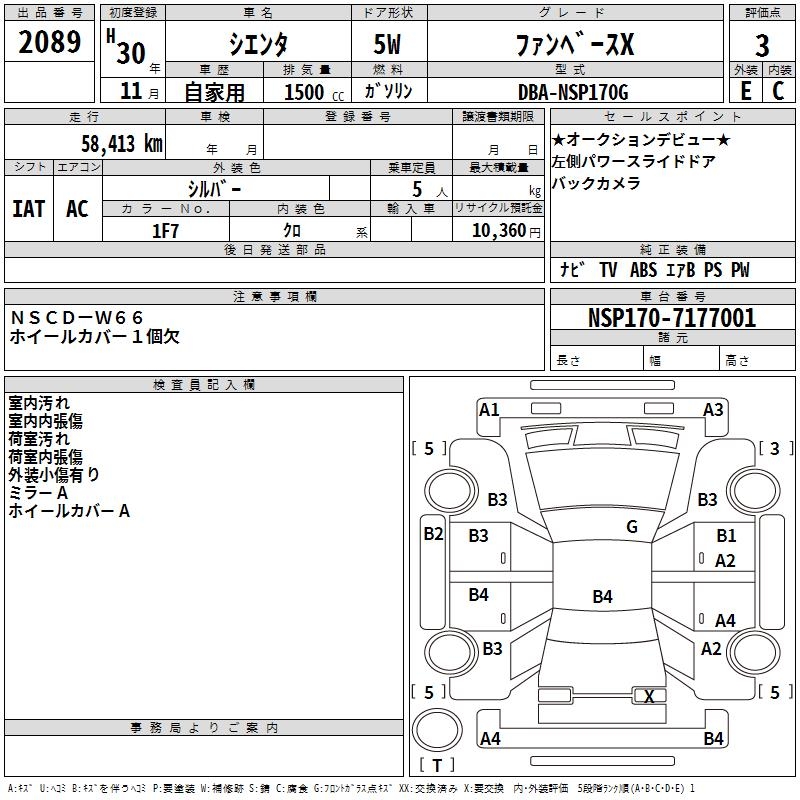 TOYOTA SIENTA FAN BASE X - лот 2089
