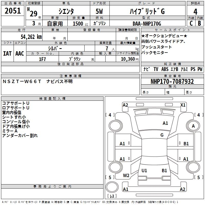 TOYOTA SIENTA HYBRID G - лот 2051