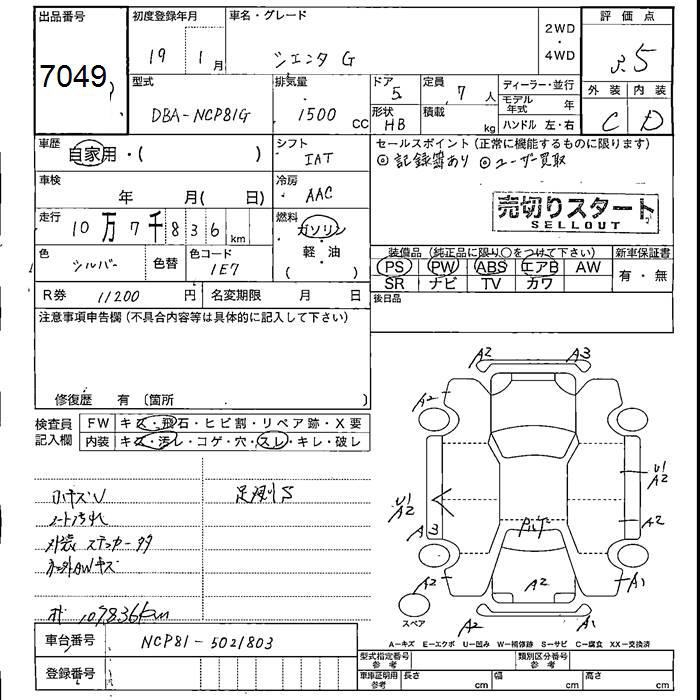 TOYOTA SIENTA G - лот 7049