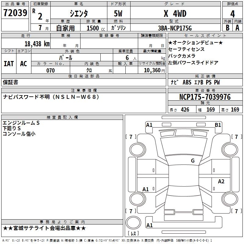 TOYOTA SIENTA X 4WD - лот 72039