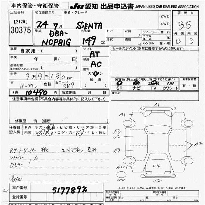TOYOTA SIENTA - лот 30375