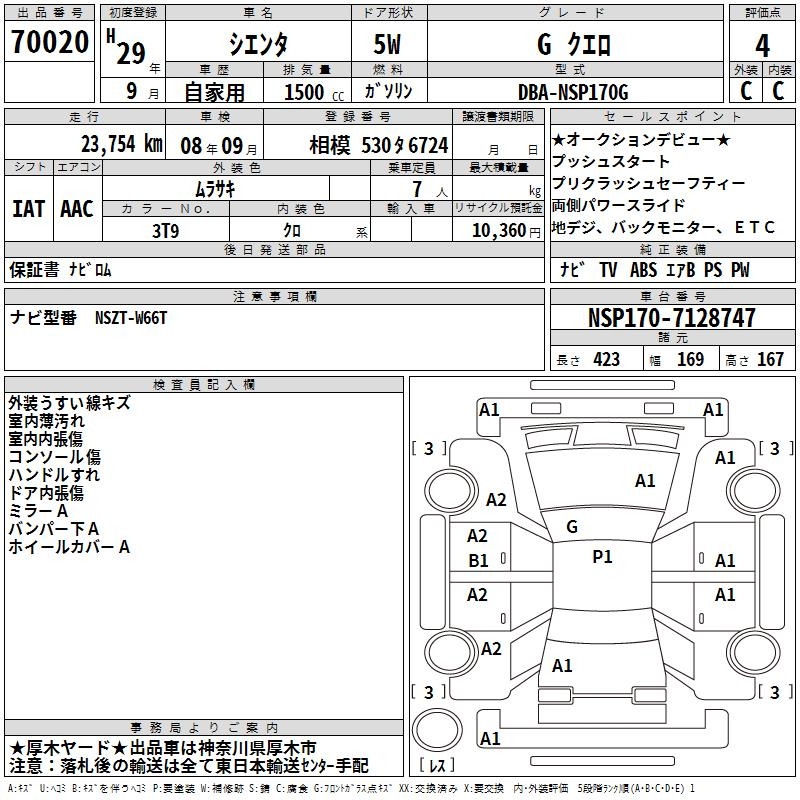 TOYOTA SIENTA GKERO - лот 70020