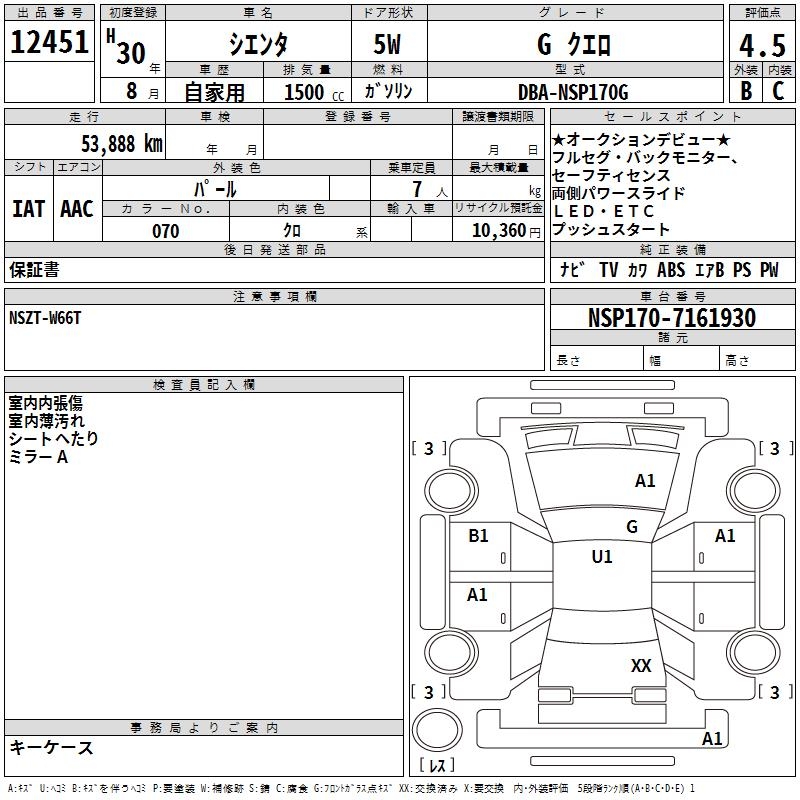 TOYOTA SIENTA GKERO - лот 12451