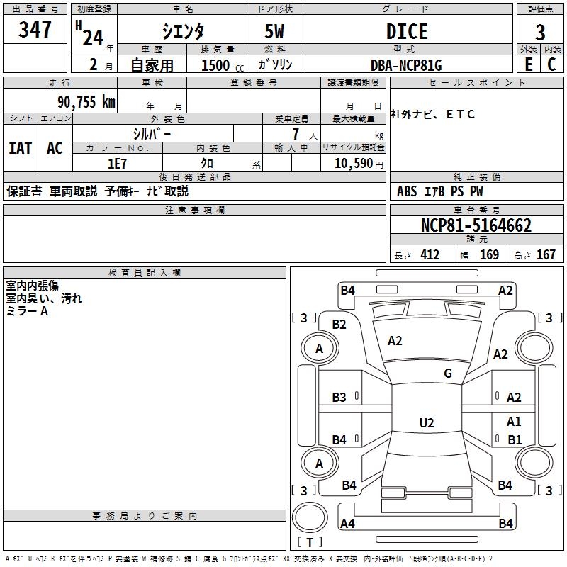 TOYOTA SIENTA DICE - лот 347