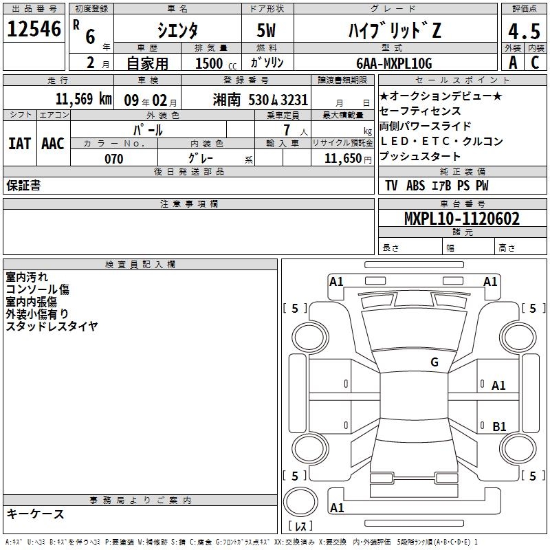 TOYOTA SIENTA HYBRID Z - лот 12546