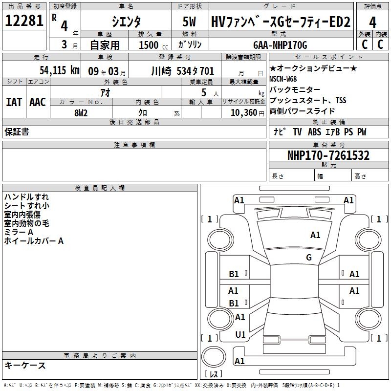 TOYOTA SIENTA HV FAN BASE G SAFETY -ED2 - лот 12281