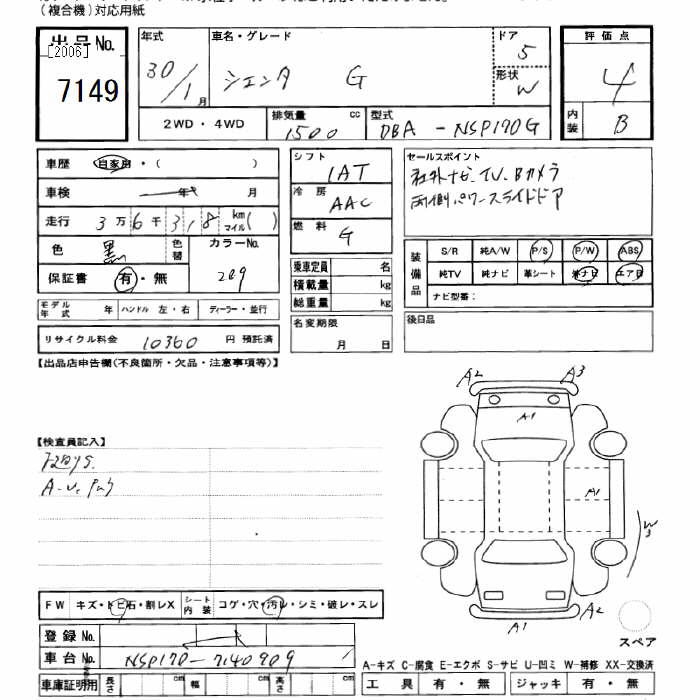 TOYOTA SIENTA G - лот 7149
