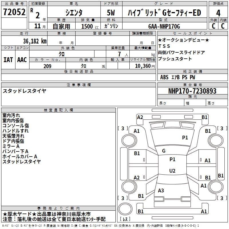 TOYOTA SIENTA HYBRID G SAFETY -ED - лот 72052
