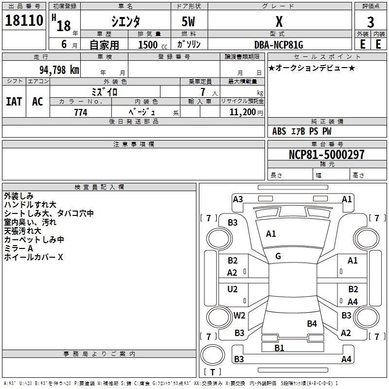 TOYOTA SIENTA X - лот 18110