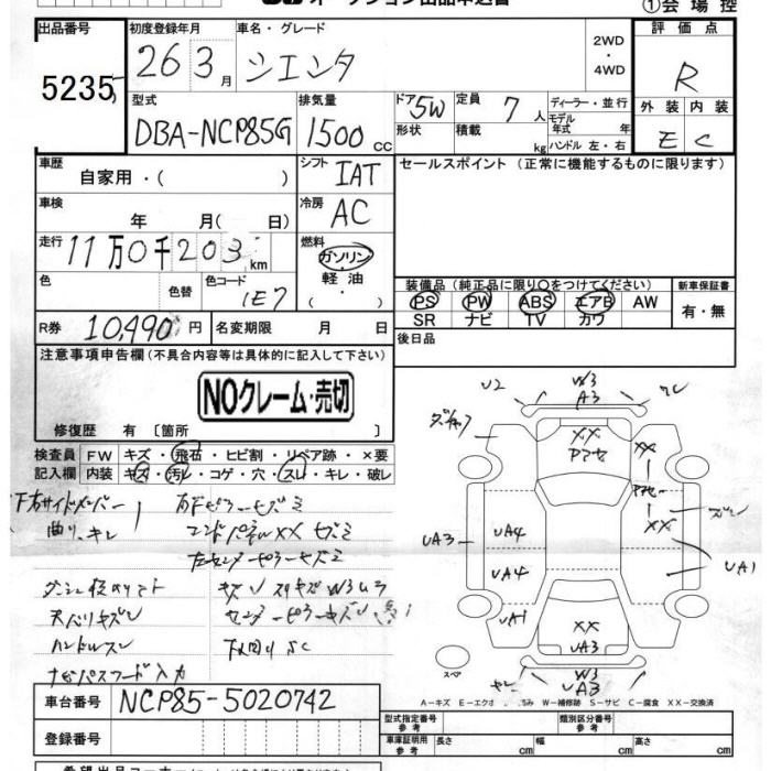 TOYOTA SIENTA - лот 5235