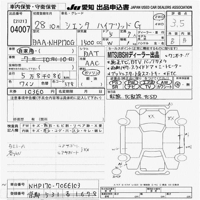 TOYOTA SIENTA HYBRID G - лот 4007