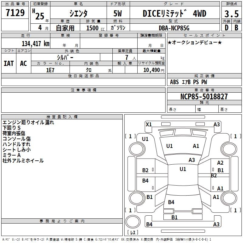 TOYOTA SIENTA DICE LIMITED 4WD - лот 7129