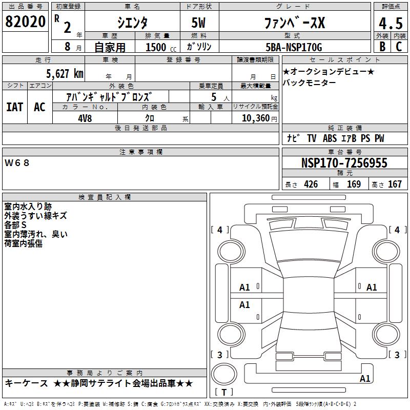 TOYOTA SIENTA FAN BASE X - лот 82020