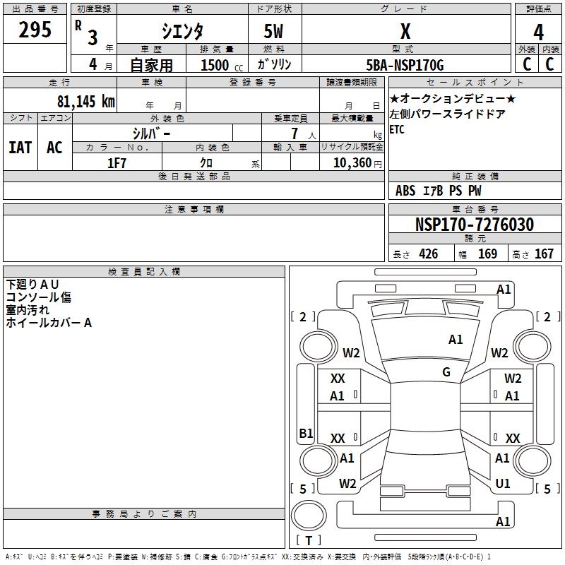 TOYOTA SIENTA X - лот 295