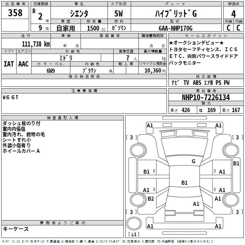 TOYOTA SIENTA HYBRID G - лот 358