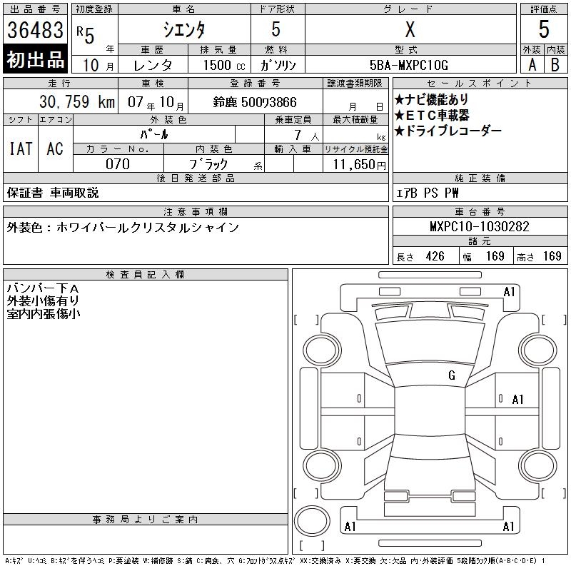 TOYOTA SIENTA X - лот 36483