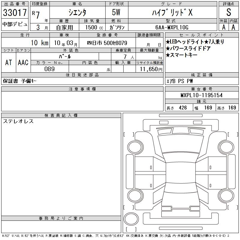TOYOTA SIENTA HYBRID X - лот 33017