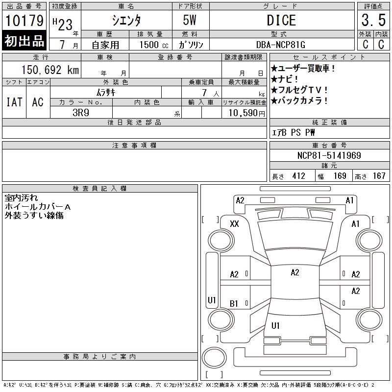 TOYOTA SIENTA DICE - лот 10179
