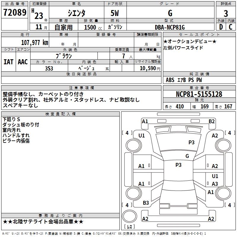TOYOTA SIENTA G - лот 72089