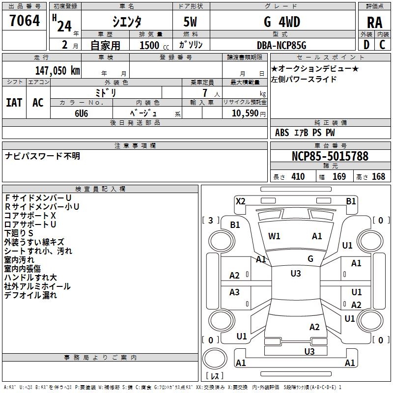 TOYOTA SIENTA G 4WD - лот 7064