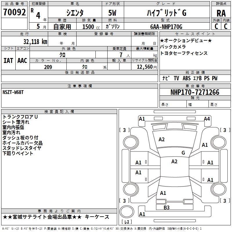 TOYOTA SIENTA HYBRID G - лот 70092
