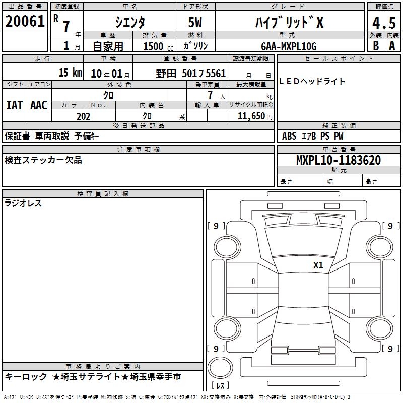 TOYOTA SIENTA HYBRID X - лот 20061