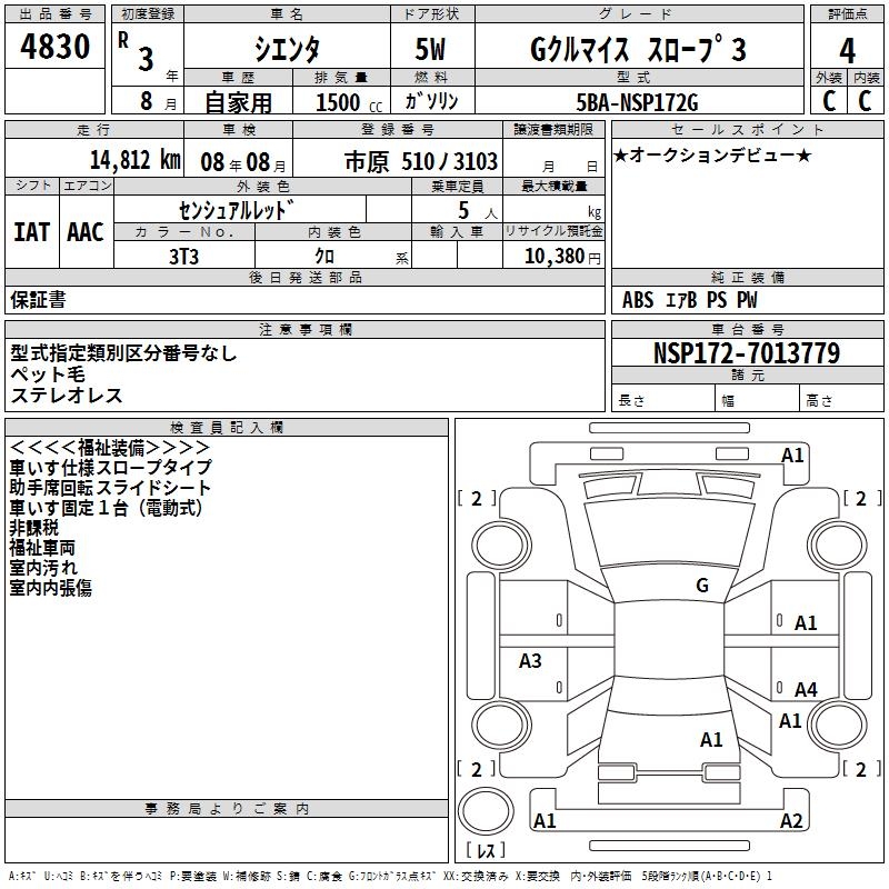 TOYOTA SIENTA GKRU MY S SLOPE 3 - лот 4830