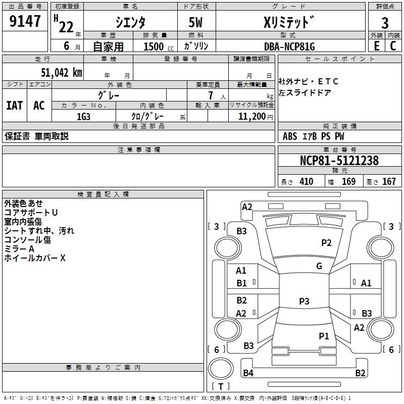 TOYOTA SIENTA X LIMITED - лот 9147