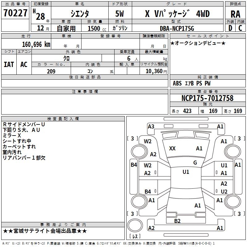 TOYOTA SIENTA X V PACKAGE 4WD - лот 70227