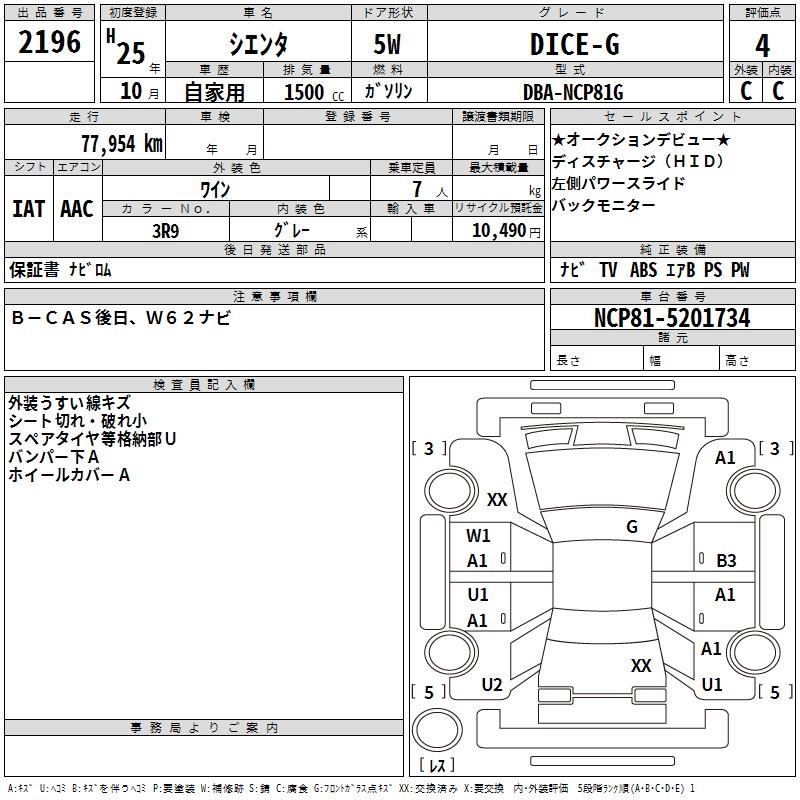 TOYOTA SIENTA DICE-G - лот 2196