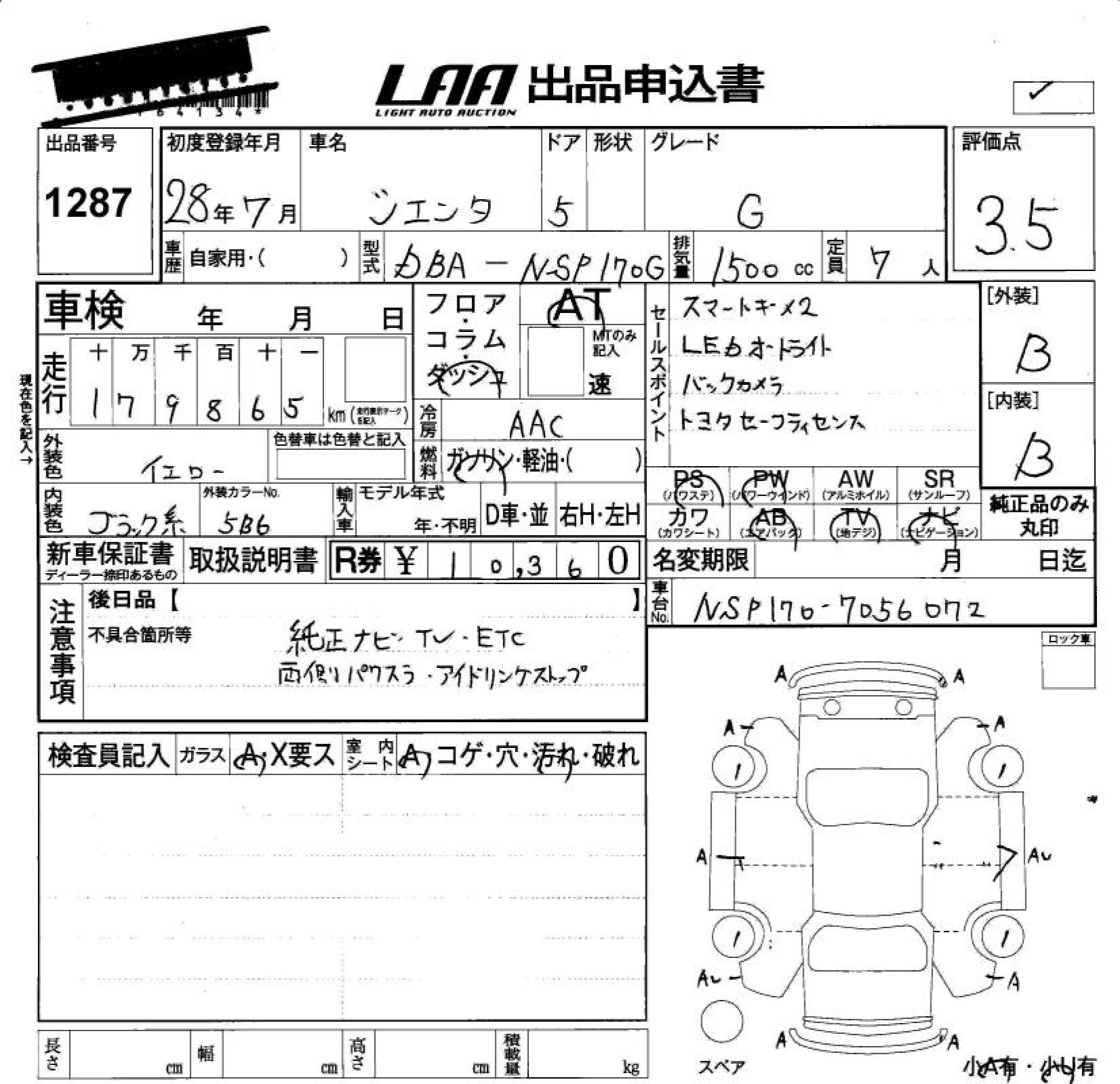 TOYOTA SIENTA G - лот 1287