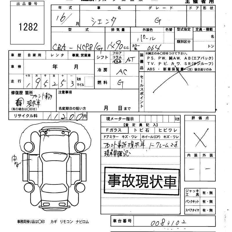 TOYOTA SIENTA G - лот 1282