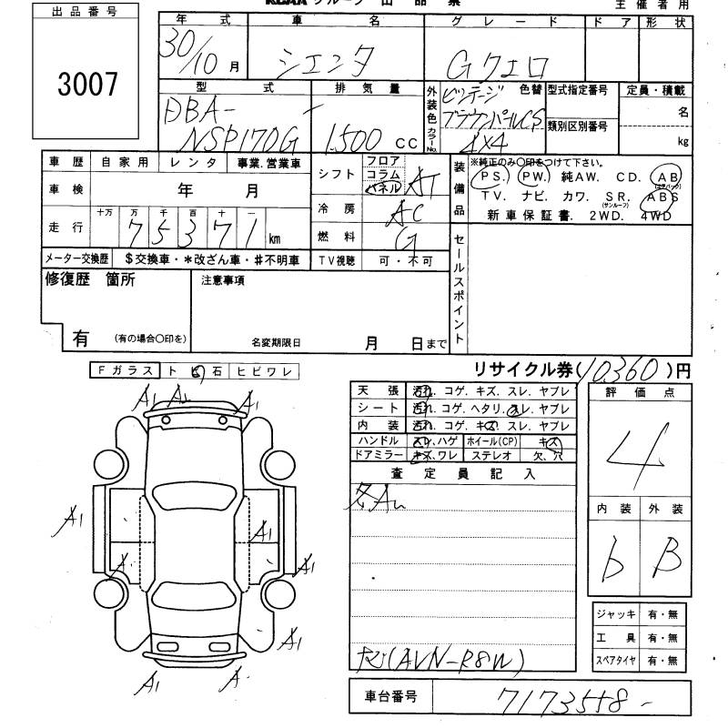 TOYOTA SIENTA GKERO - лот 3007