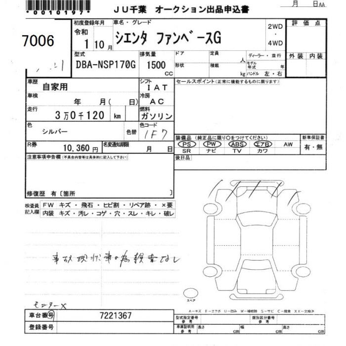 TOYOTA SIENTA FAN BASE G - лот 7006