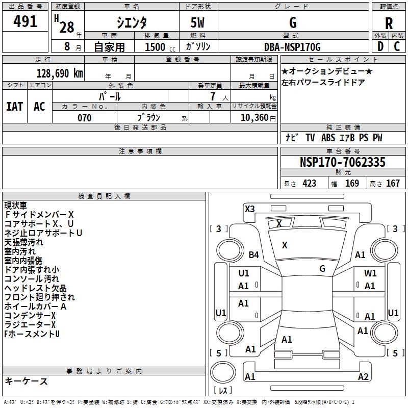 TOYOTA SIENTA G - лот 491