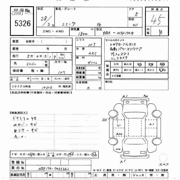 TOYOTA SIENTA G - лот 5326