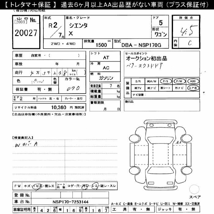 TOYOTA SIENTA X - лот 20027