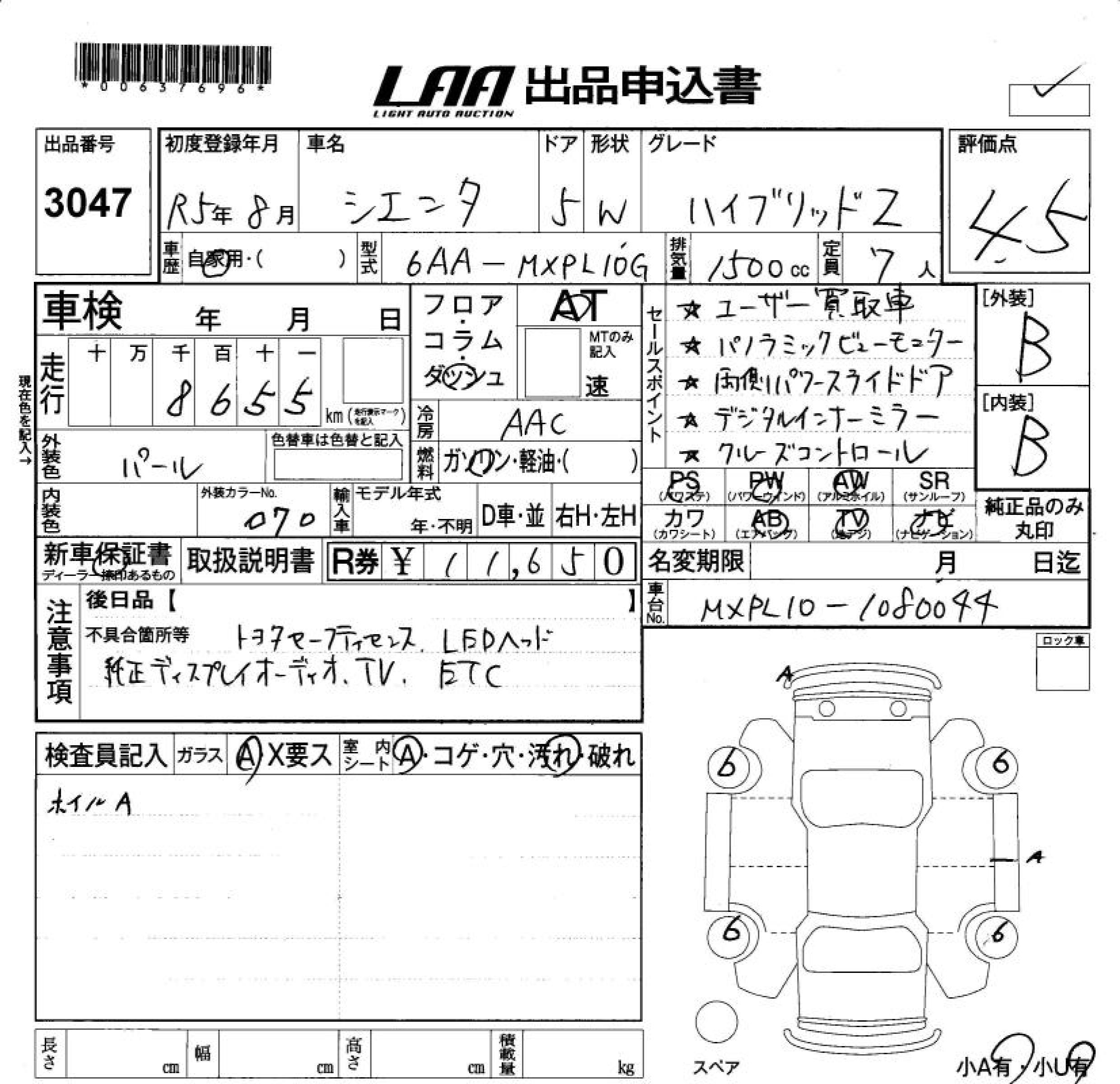 TOYOTA SIENTA HYBRID Z - лот 3047