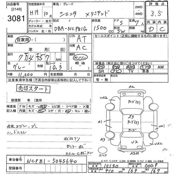 TOYOTA SIENTA X LTD - лот 3081