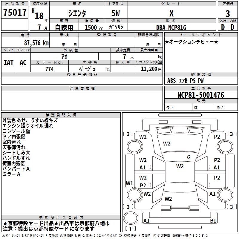 TOYOTA SIENTA X - лот 75017