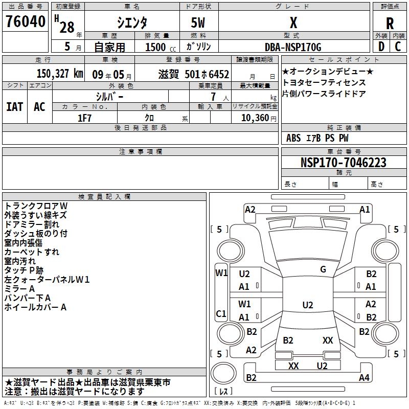 TOYOTA SIENTA X - лот 76040
