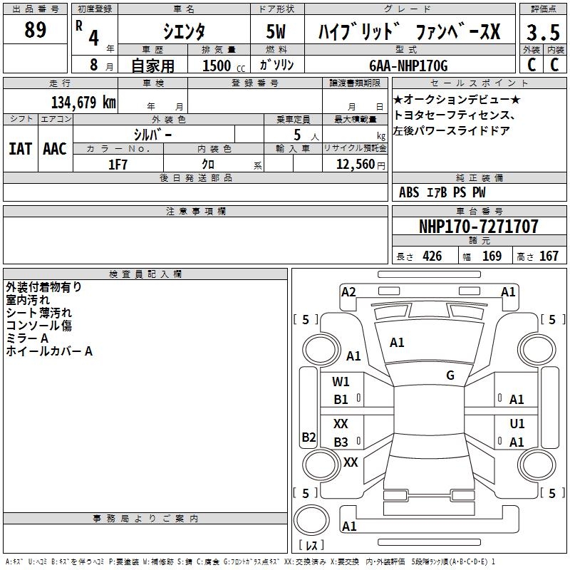 TOYOTA SIENTA HYBRID FAN BASE X - лот 89
