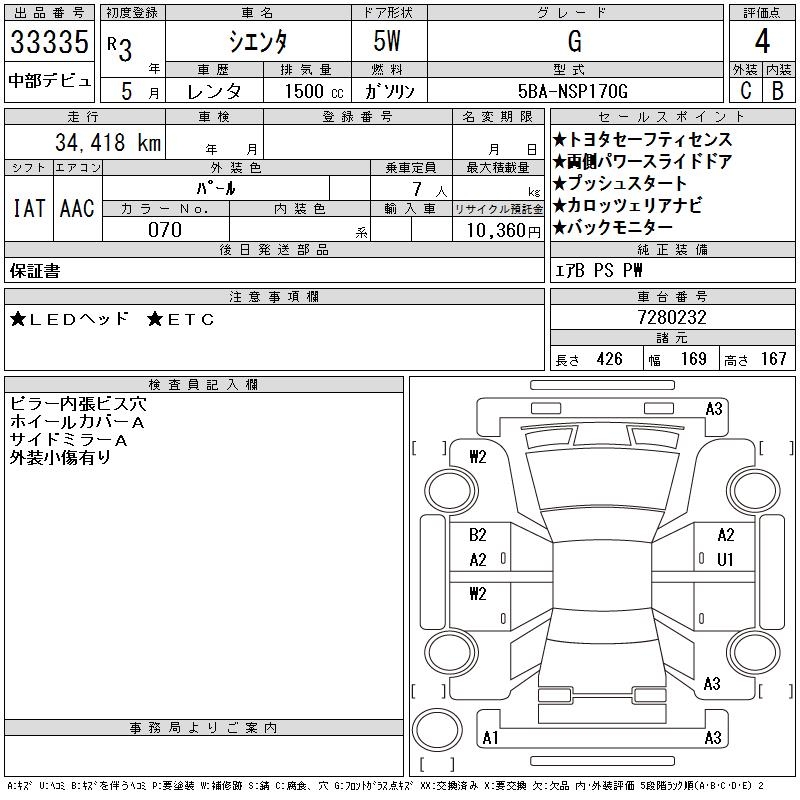 TOYOTA SIENTA - лот 33335
