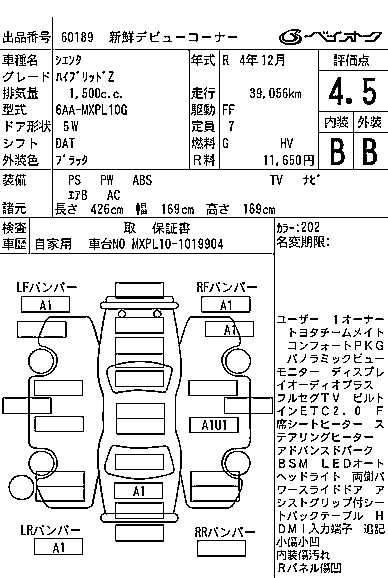 TOYOTA SIENTA HYBRID Z - лот 60189