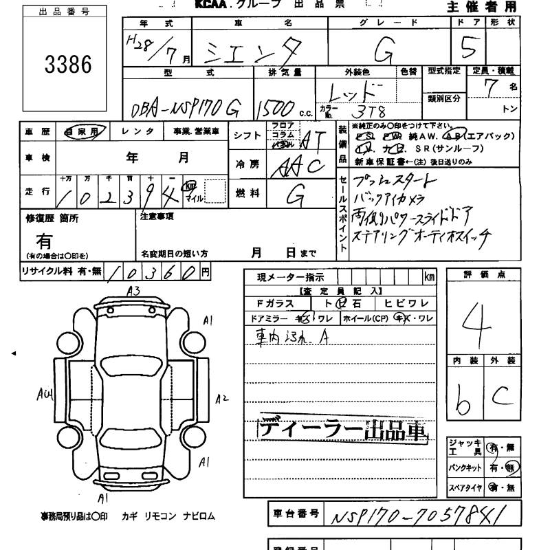 TOYOTA SIENTA G - лот 3386