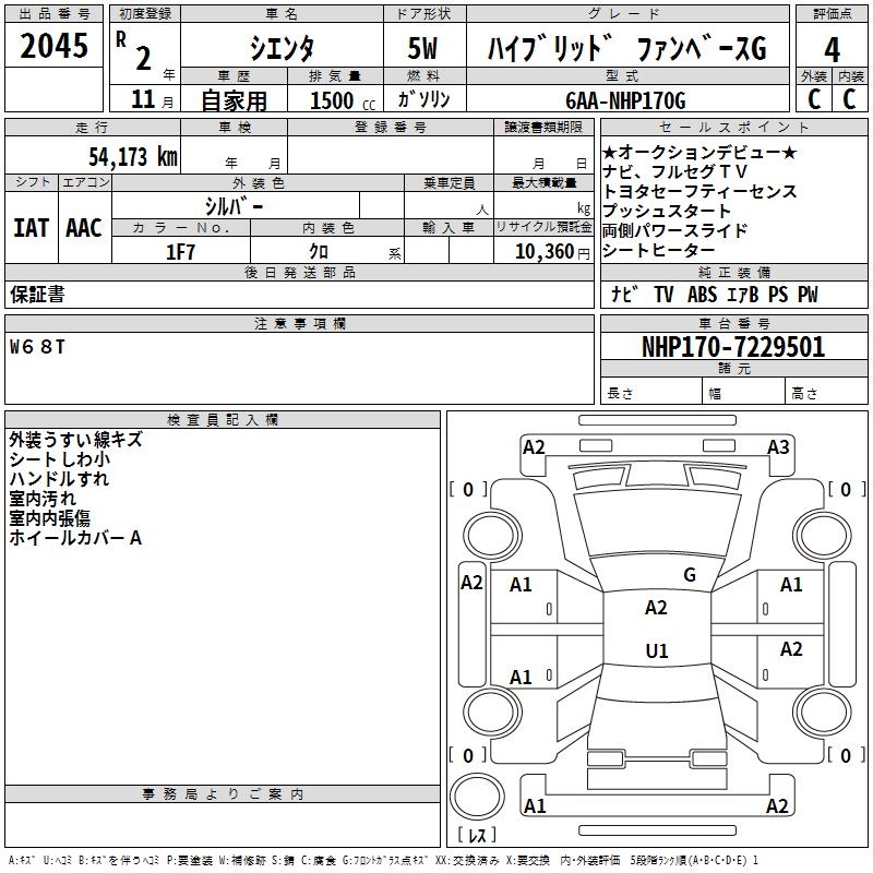 TOYOTA SIENTA HYBRID FAN BASE G - лот 2045